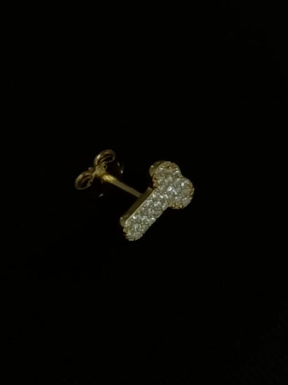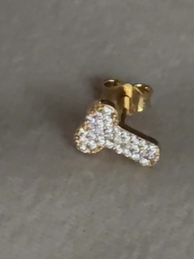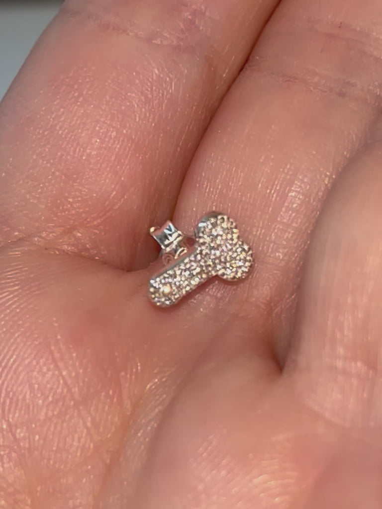 Phallus form earrings. Tiny shape, encrusted with cubic zirconia stones.